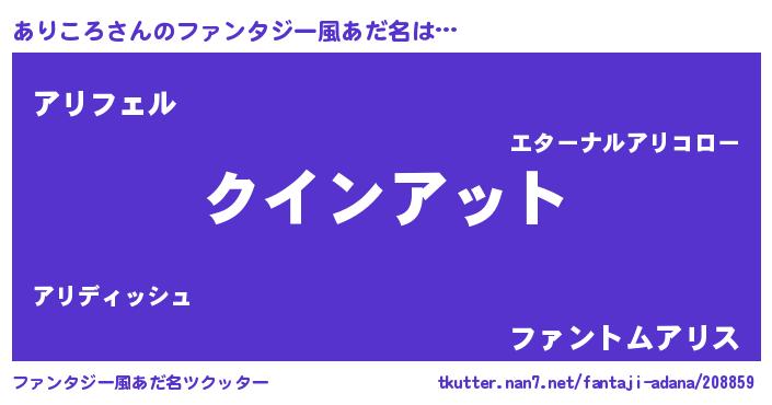 | 男性向けラノベタイトル風あだ名 | 『ノーゲーム・ノーアリコロ』 |