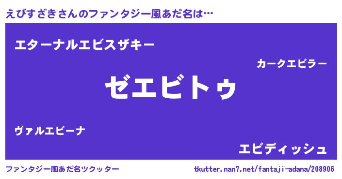 | 男性向けラノベタイトル風あだ名 | 『Re:えびすざきから始める異世界生活』 |