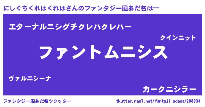 | 自動車の名前っぽいあだ名 | 『ニント』『ニクア』『フェニーシ』 |