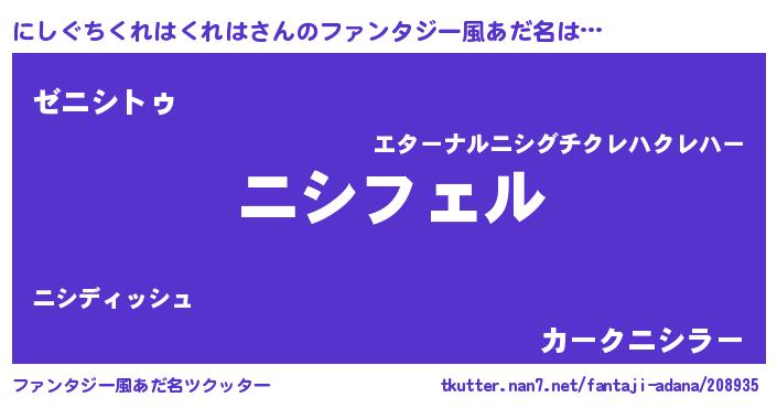 | ヒーロー風カッコイイあだ名 | 『スーパーニシグチクレハクレハ』 |