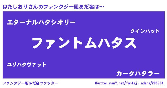 | ポケモン風あだ名 | 『ヒハタシオリ』『ハタゴンZ』 |