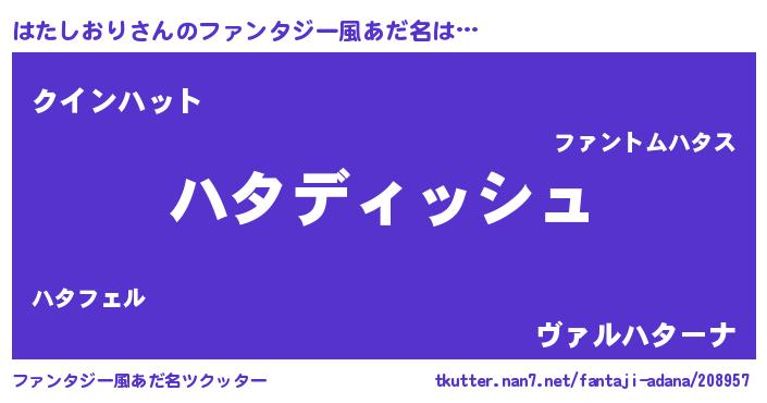 | ヒーロー風カッコイイあだ名 | 『ネオハタシオリ』『仮面ハタダー』 |
