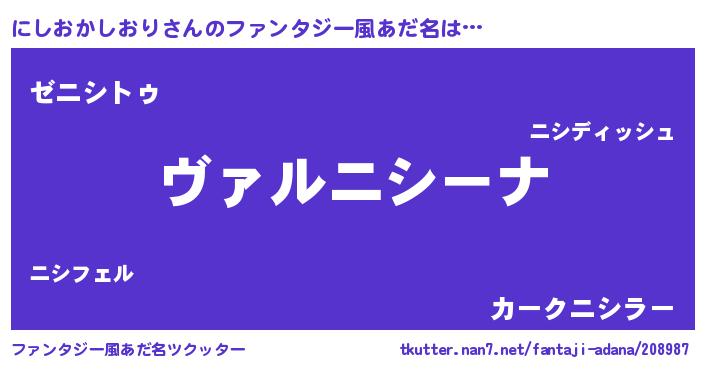 | ヘコむあだ名 | 『にしおかしおり(遠い目)』『にしにゅー』 |