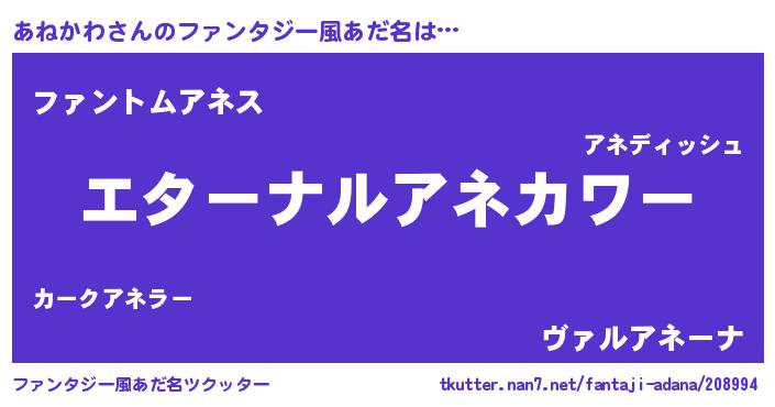 | ポケモン風あだ名 | 『アネカダネ』『ヒアネカワ』 |