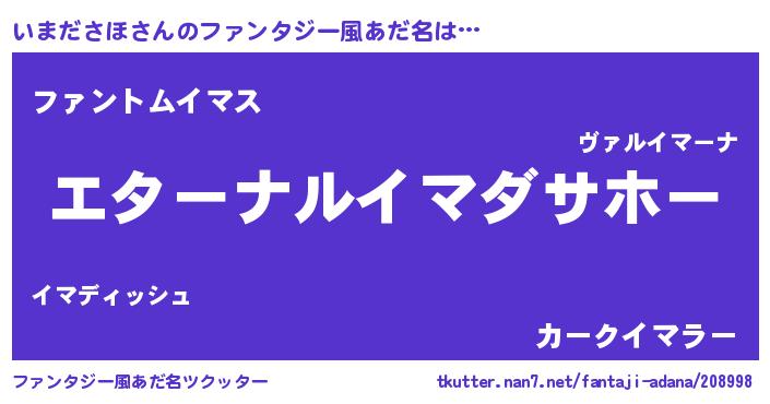 | ポケモン風あだ名 | 『イマダダネ』『ヒイマダサホ』 |