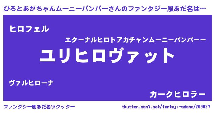 | 胡散臭い通販商品みたいなあだ名 | 『モテモテ間違いなし霊験あらたかなお札…その名も「ひろとあかちゃんムーニーパンパー」』 |