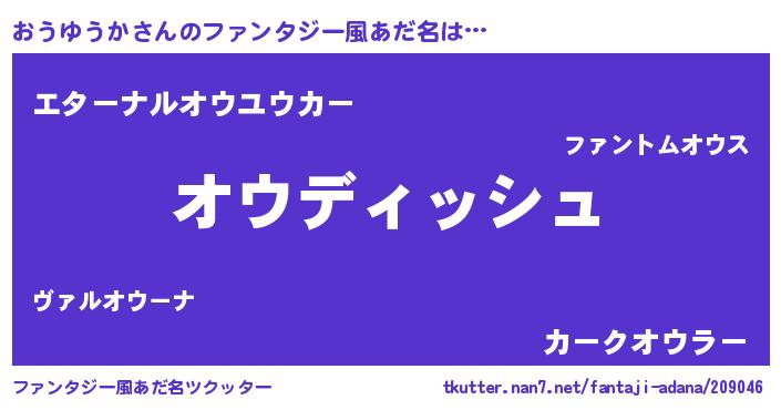 | ヒーロー風カッコイイあだ名 | 『ネオオウユウカ』『暗黒騎士オウ』 |