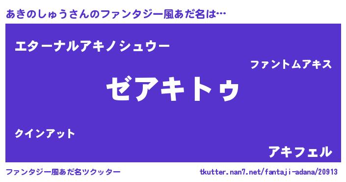 | 男性向けラノベタイトル風あだ名 | 『Re:あきのしゅうから始める異世界生活』 |
