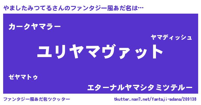 | 男性向けラノベタイトル風あだ名 | 『やましたみつてる~年齢イコール彼女いない歴の魔法使い~』 |