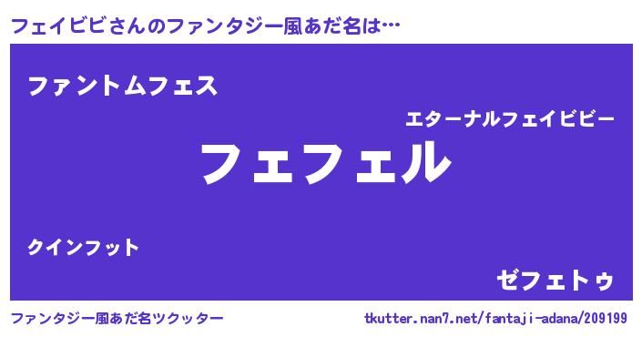 | 男性向けラノベタイトル風あだ名 | 『フェイビビアートオンライン』 |