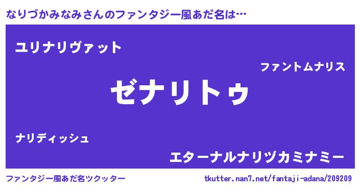 | 女子向けラノベタイトル風あだ名 | 『闇のなりづかみなみ』 |