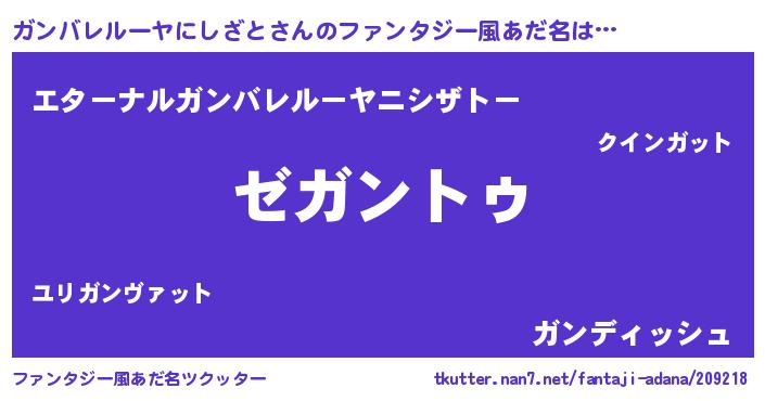 | 意味不明あだ名 | 『自称ガンバレルーヤにしざと』 |