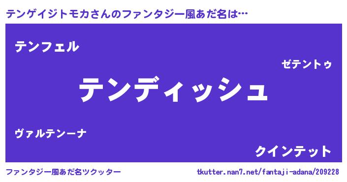 | ヘコむあだ名 | 『テンゲイジトモカ(遠い目)』『テンもー』 |