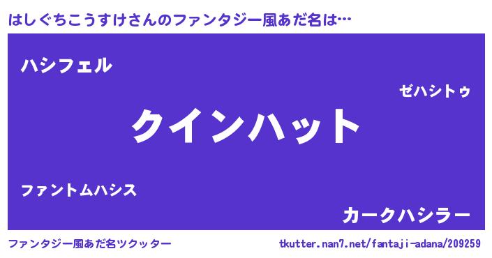 | 意味不明あだ名 | 『眠気覚ましガムはしぐちこうすけ味』 |