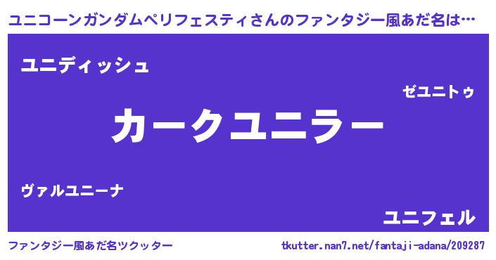 | 意味不明あだ名 | 『永久保存ユニコーンガンダムペリフェスティ』 |