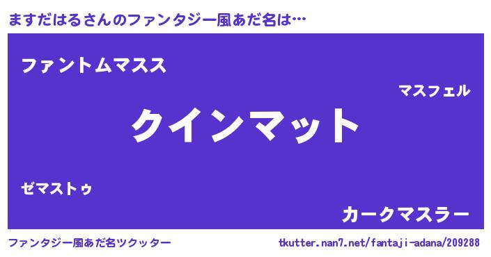 | 男性向けラノベタイトル風あだ名 | 『おまえをオタクにしてやるから、俺をますだはるにしてくれ! 』 |