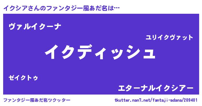 | 意味不明あだ名 | 『永久保存イクシア』『自称イクシア』 |