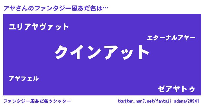 | 女子向けラノベタイトル風あだ名 | 『アヤ夫妻のなれそめ』『闇のアヤ』 |