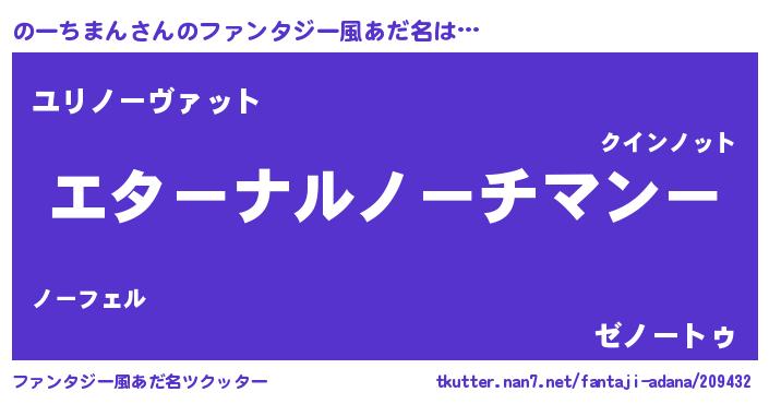 | 女子向けラノベタイトル風あだ名 | 『のーちまんの雑貨屋さん』 |