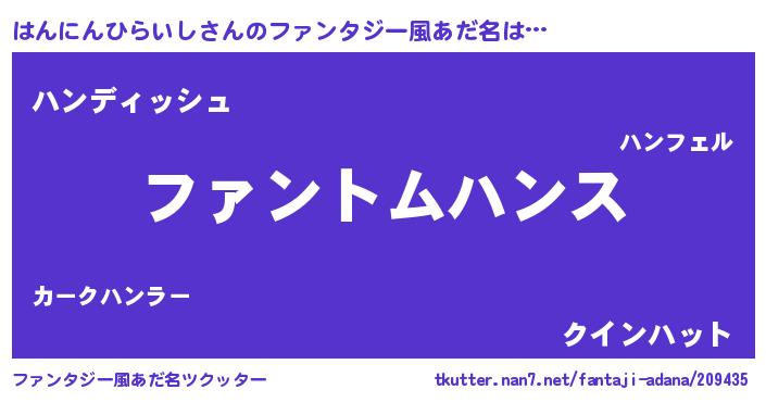 | ポケモン風あだ名 | 『ヒハンニンヒライシ』『ゼニハン』 |