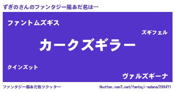 | 男性向けラノベタイトル風あだ名 | 『緋弾のズギノ』『魔弾の王とずぎの』 |