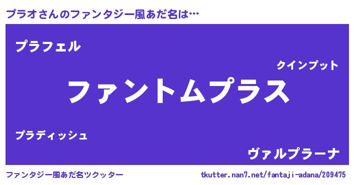 | 女子向けラノベタイトル風あだ名 | 『プラオは平凡を望む』『プラオ恋絵巻』 |