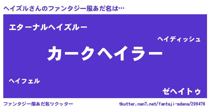 | ヒーロー風カッコイイあだ名 | 『ウルトラヘイズルマン』『ネオヘイズル』 |