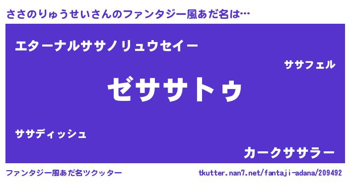 | 女子向けラノベタイトル風あだ名 | 『ささのりゅうせいなんてお断りですっ。』 |