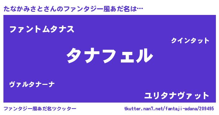 | ヒーロー風カッコイイあだ名 | 『スーパータナカミサト』『黄金騎士タナ』 |