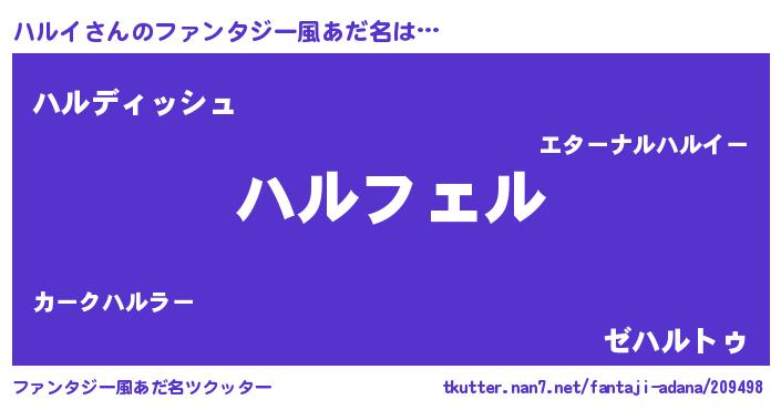 | 男性向けラノベタイトル風あだ名 | 『ハルイアートオンライン』 |