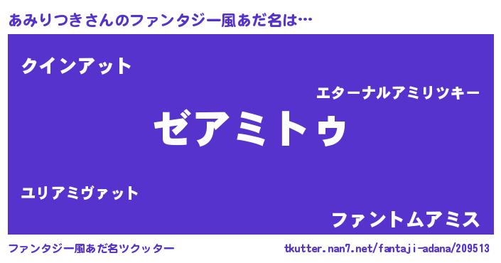 | 意味不明あだ名 | 『自称あみりつき』 |