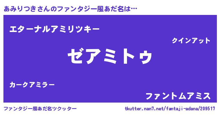 | 意味不明あだ名 | 『自称あみりつき』 |