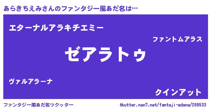 | ヒーロー風カッコイイあだ名 | 『究極戦士アラキチエミ』『暗黒騎士アラ』 |