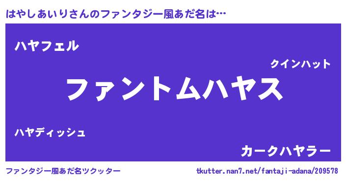 | 男性向けラノベタイトル風あだ名 | 『はやしあいりの嫁は女の子じゃないと思った?』 |