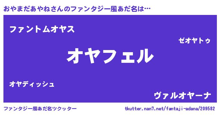 | 男性向けラノベタイトル風あだ名 | 『オヤマダアヤネアートオンライン』 |
