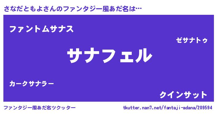 | ヒーロー風カッコイイあだ名 | 『スーパーサナダトモヨ』『暗黒騎士サナ』 |