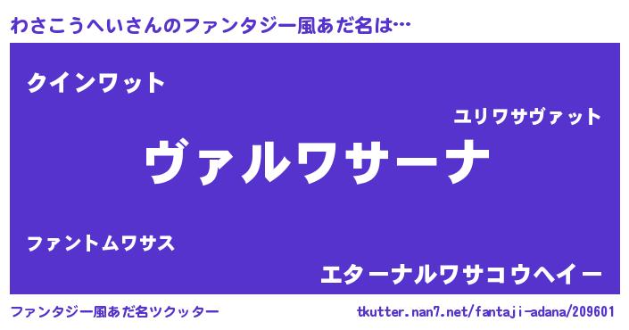 | 男性向けラノベタイトル風あだ名 | 『この素晴らしい世界にわさこうへいを!』 |