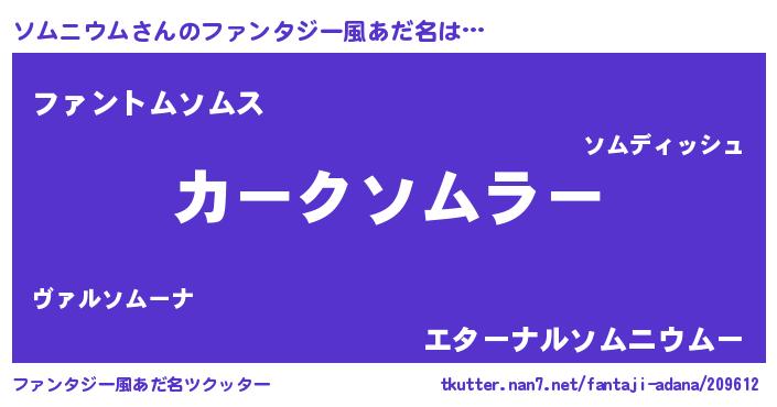 | ヒーロー風カッコイイあだ名 | 『暗黒騎士ソム』『ネオソムニウム』 |