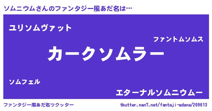| 自動車の名前っぽいあだ名 | 『フェソーム』『ソールスムイス』 |