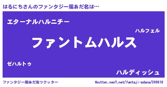 | ヒーロー風カッコイイあだ名 | 『幻影騎士ハル』『ウルトラはるにちマン』 |