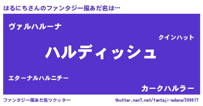 | 男性向けラノベタイトル風あだ名 | 『はるにちという概念が存在しない退屈な世界 』 |