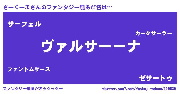 さーくーまさんのファンタジー風あだ名をツクッター!