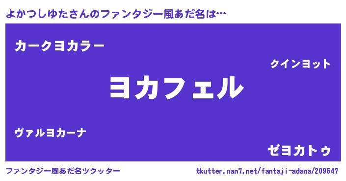 よかつしゆたさんのファンタジー風あだ名をツクッター!