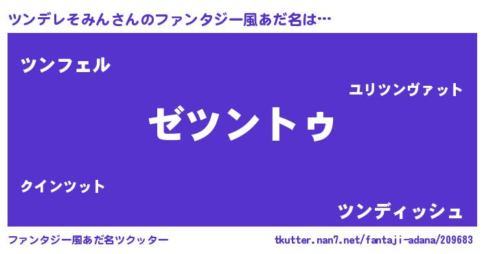 | 意味不明あだ名 | 『自称ツンデレそみん』 |