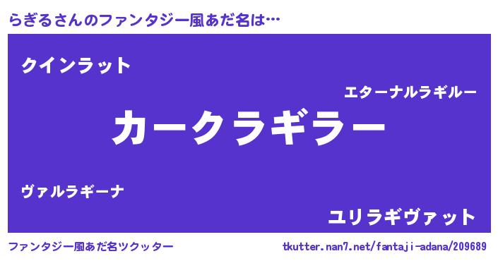 | 男性向けラノベタイトル風あだ名 | 『緋弾のラギル』『はたらくらぎるさま!』 |