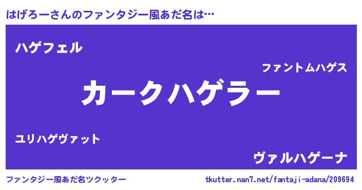 | ヒーロー風カッコイイあだ名 | 『スーパーハゲロー』『仮面ハゲダー』 |