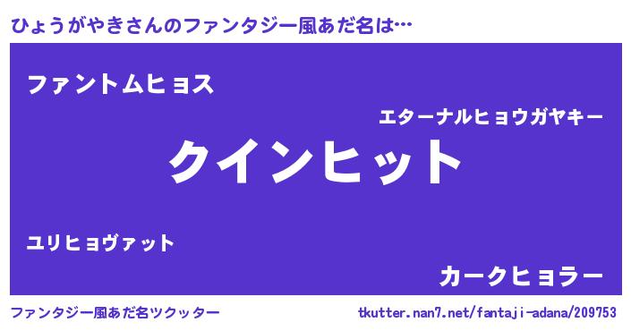 | 男性向けラノベタイトル風あだ名 | 『おまえをオタクにしてやるから、俺をひょうがやきにしてくれ! 』 |