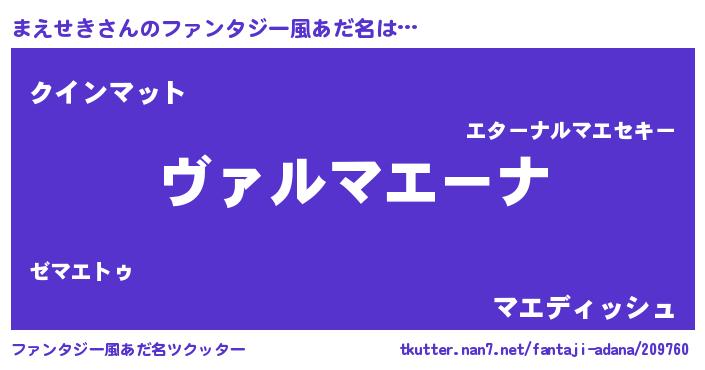 | 男性向けラノベタイトル風あだ名 | 『この素晴らしい世界にまえせきを!』 |