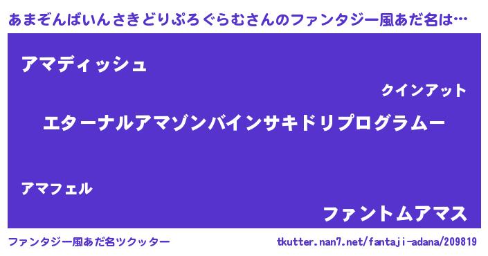 | 欧米人風あだ名 | 『あまぞんばいんさきどりぷろぐらむクリステル』 |