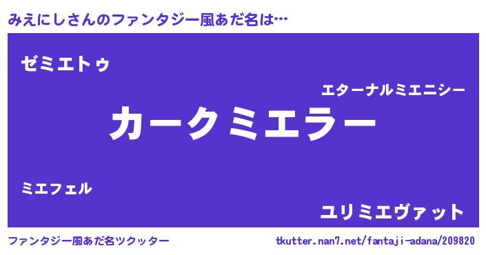 | ヒーロー風カッコイイあだ名 | 『ウルトラ戦士ミエニシ』『炎刃騎士ミエ』 |